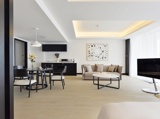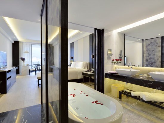 客房最低面积55平米,配备55寸三星曲面电视并带有多个国际频道、金可儿床垫、迷你吧、保险箱、熨烫设施和高速网络连接,并有独立淋浴间和浴缸。大阳台享有炫彩泳池美景,部分房间走廊可观海。